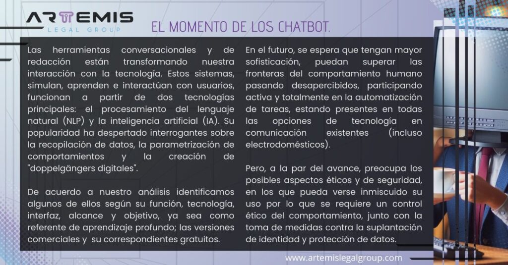 Surge para ustedes igual que para nosotros el interrogante, en el que tener un menú amplio de posibilidades dificulta la toma de decisiones, en este caso ¿En cuales confiar o a cuáles acceder?, Si bien para cada necesidad existe una herramienta particular desde ARTEMIS LEGAL GROUP nos hemos dado a la tarea de realizar una búsqueda de CHATBOT empleando las siguientes indicaciones: